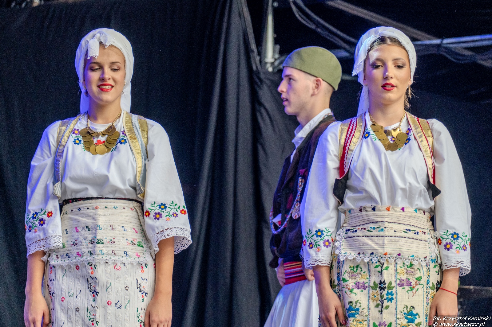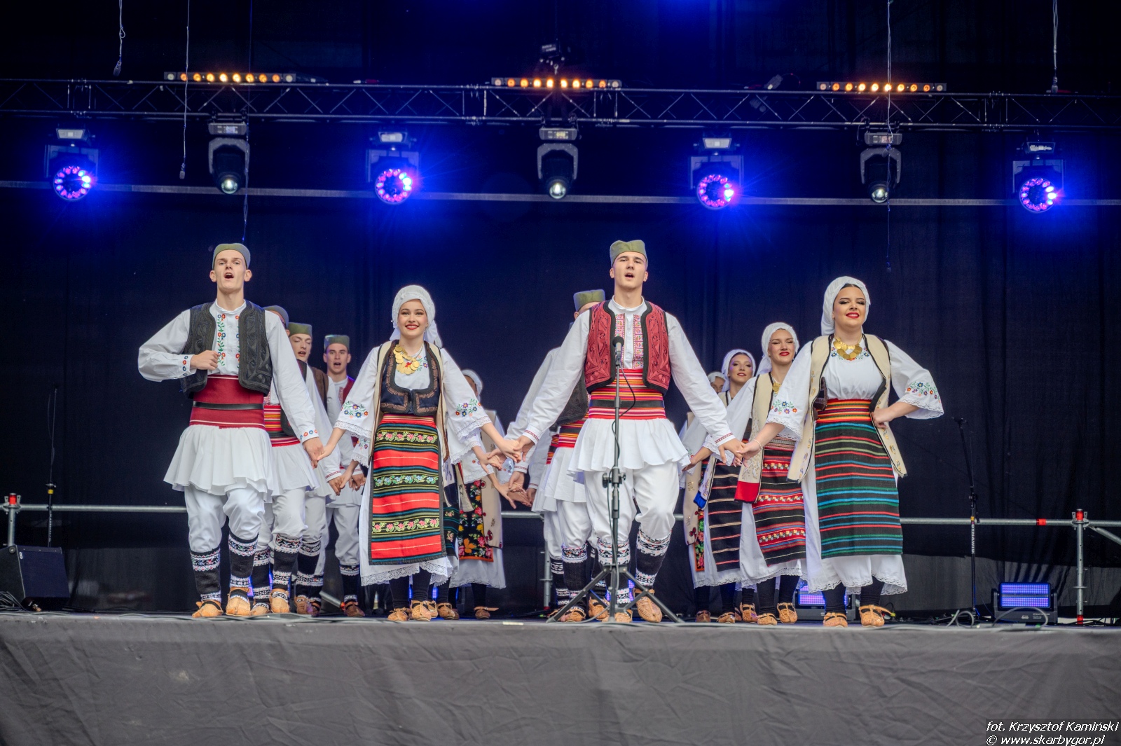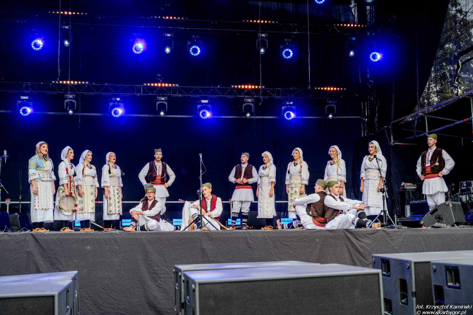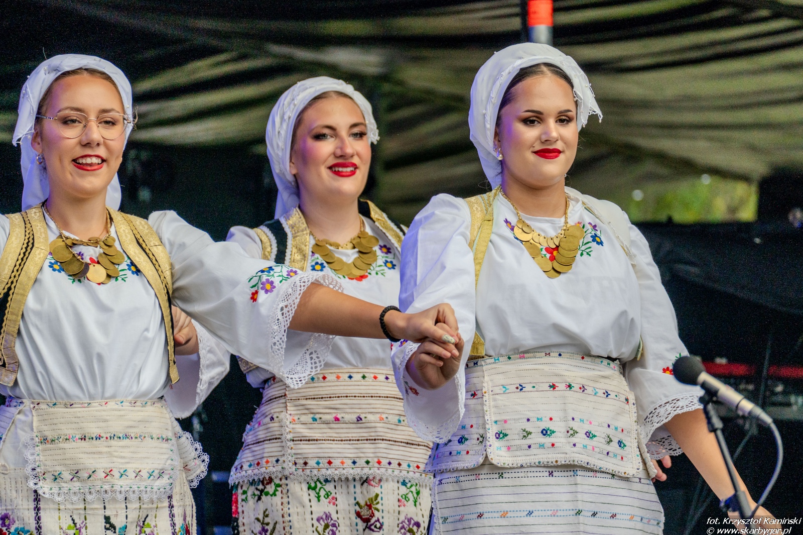 Kostiumy, pełne intensywnych kolorów i ozdobnych detali, pięknie uzupełniały prezentowaną muzykę i ruch, tworząc spójną, efektowną całość. Występ zespołu Sloboda Rumenka wniósł na scenę zupełnie inną, bałkańską energię, ukazując bogactwo kultur uczestniczących w festiwalu.