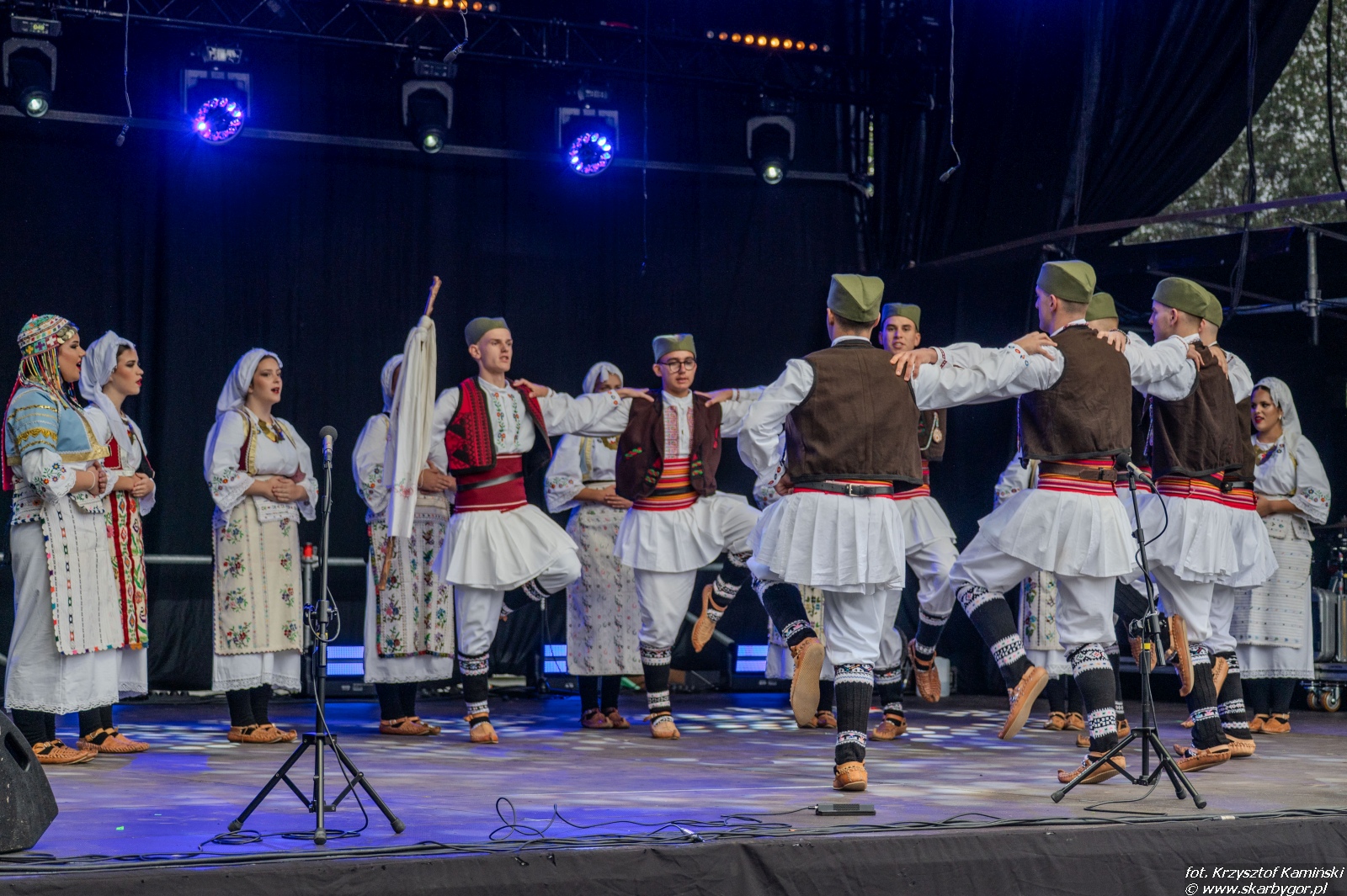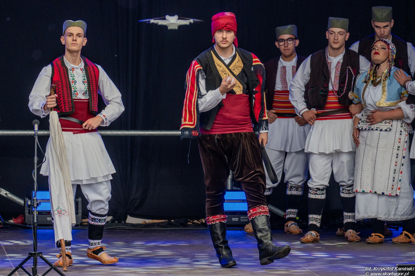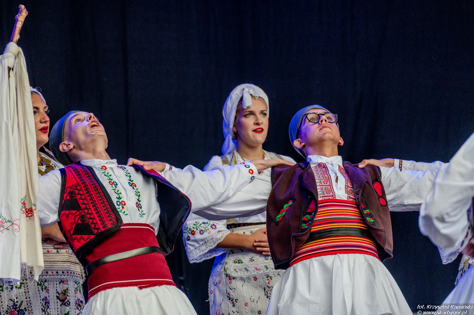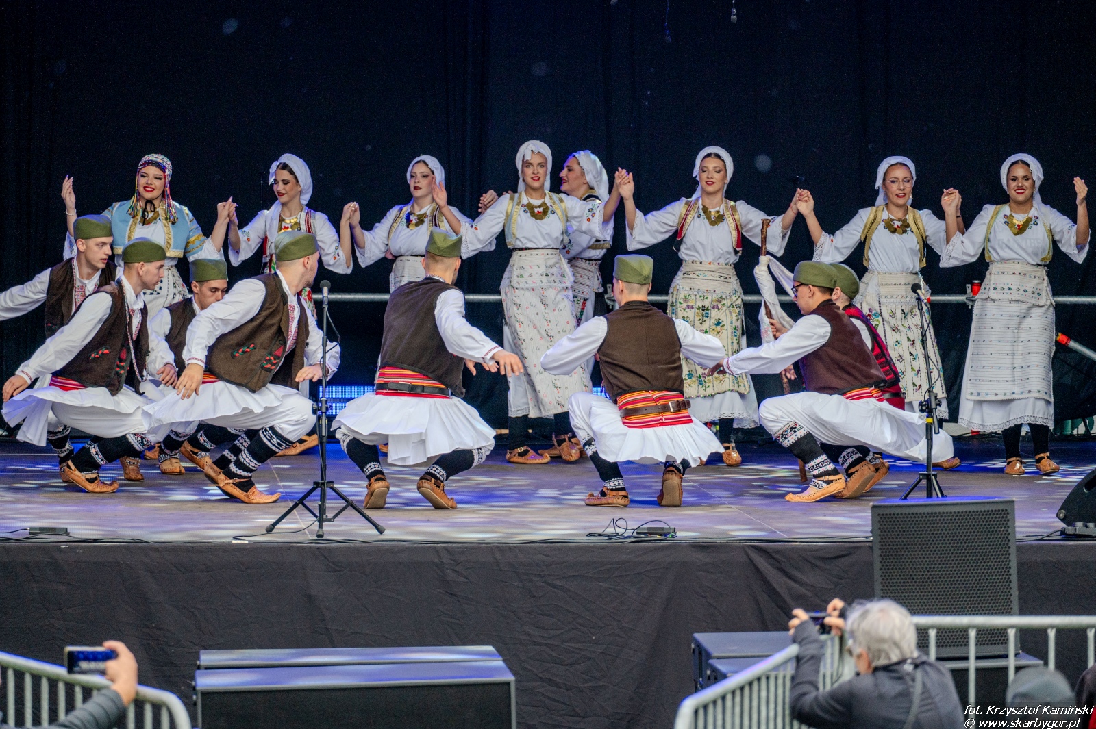 Kostiumy, pełne intensywnych kolorów i ozdobnych detali, pięknie uzupełniały prezentowaną muzykę i ruch, tworząc spójną, efektowną całość. Występ zespołu Sloboda Rumenka wniósł na scenę zupełnie inną, bałkańską energię, ukazując bogactwo kultur uczestniczących w festiwalu.