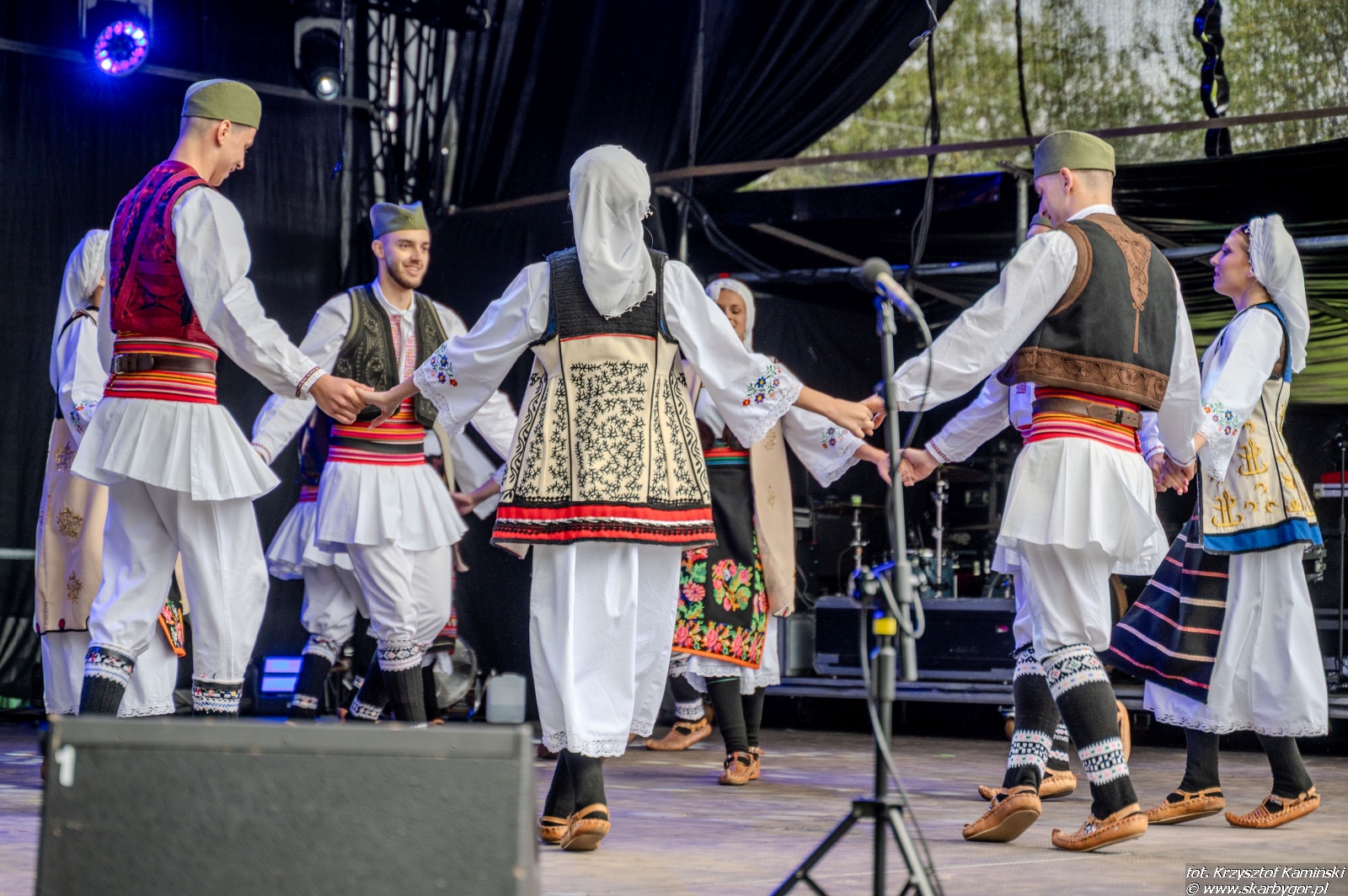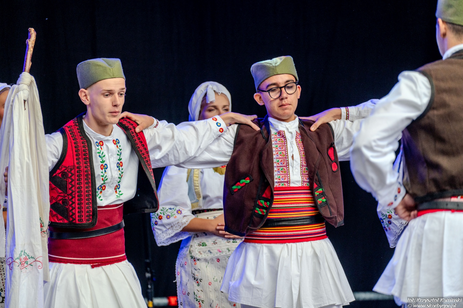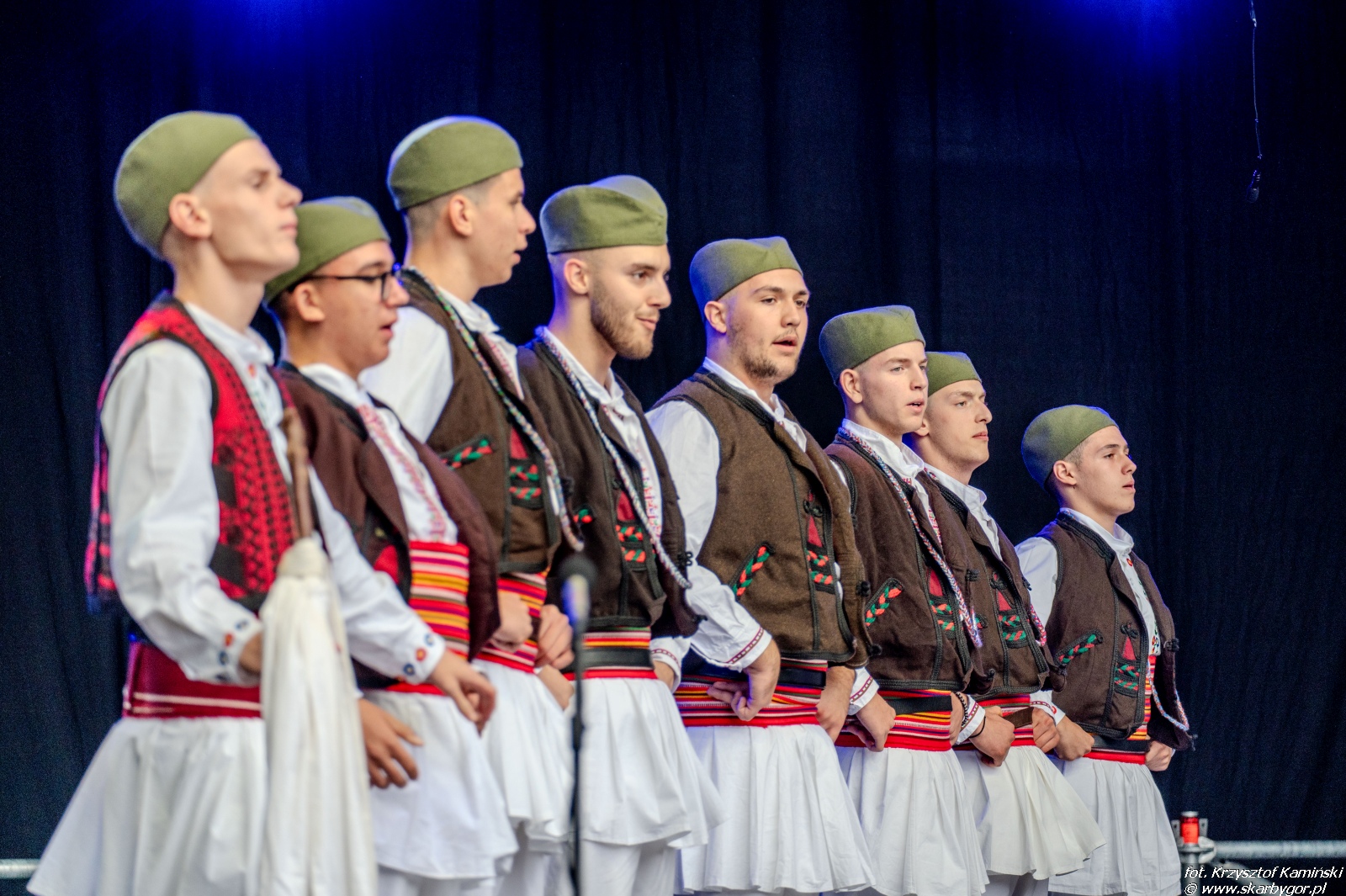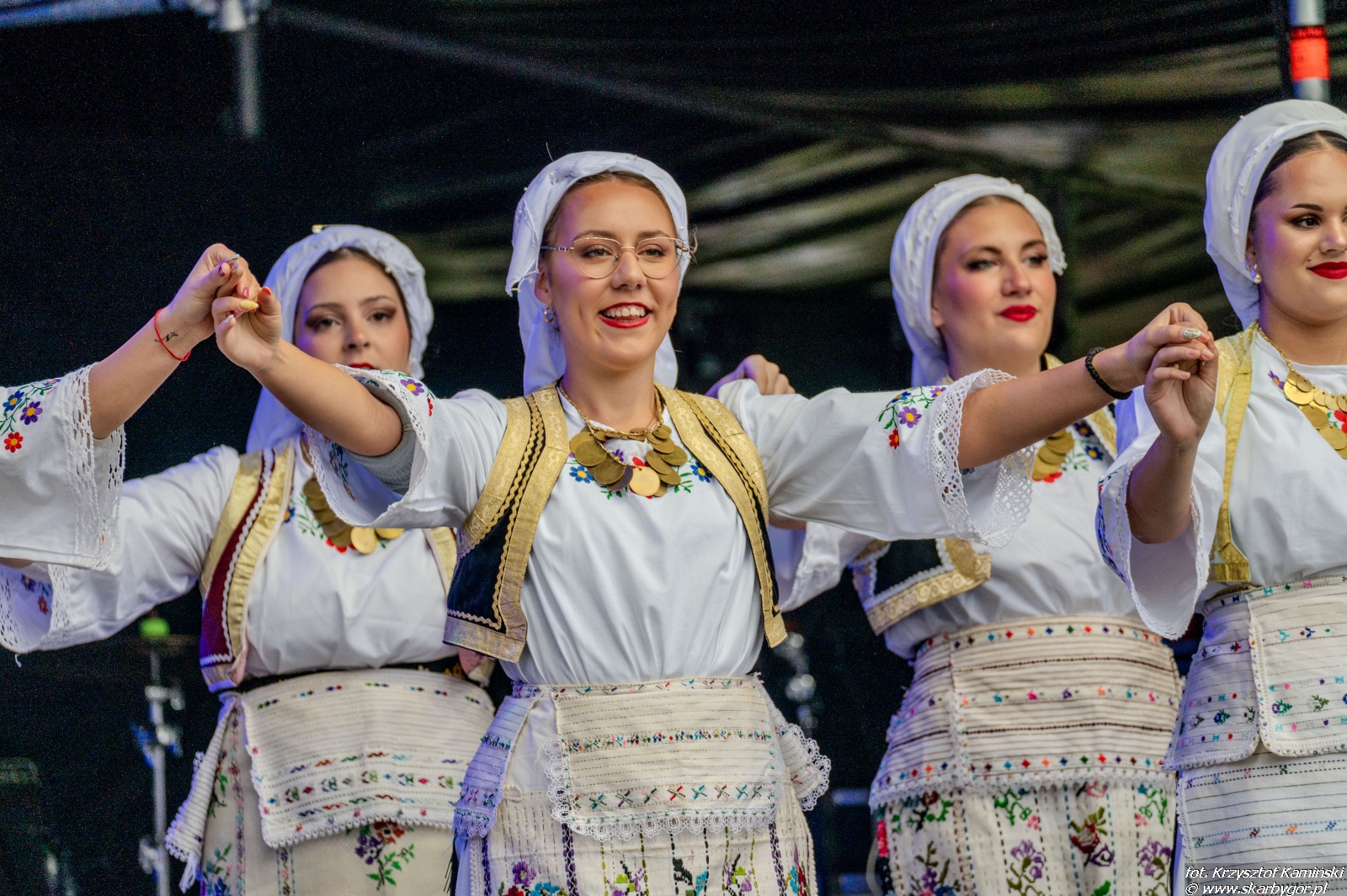 Kostiumy, pełne intensywnych kolorów i ozdobnych detali, pięknie uzupełniały prezentowaną muzykę i ruch, tworząc spójną, efektowną całość. Występ zespołu Sloboda Rumenka wniósł na scenę zupełnie inną, bałkańską energię, ukazując bogactwo kultur uczestniczących w festiwalu.