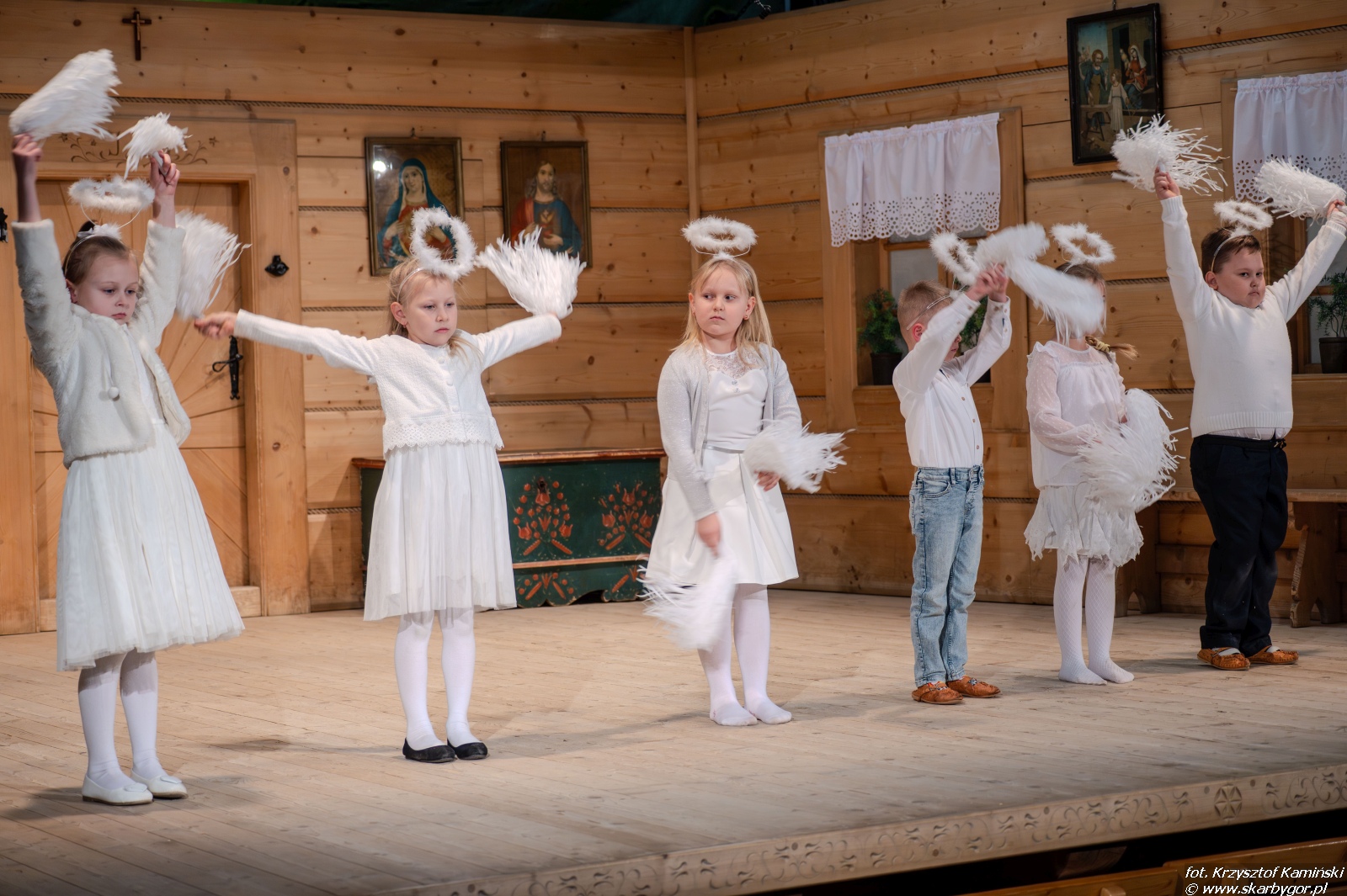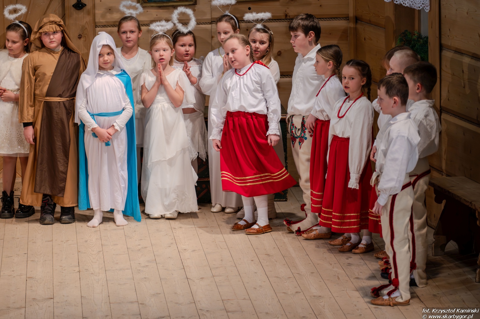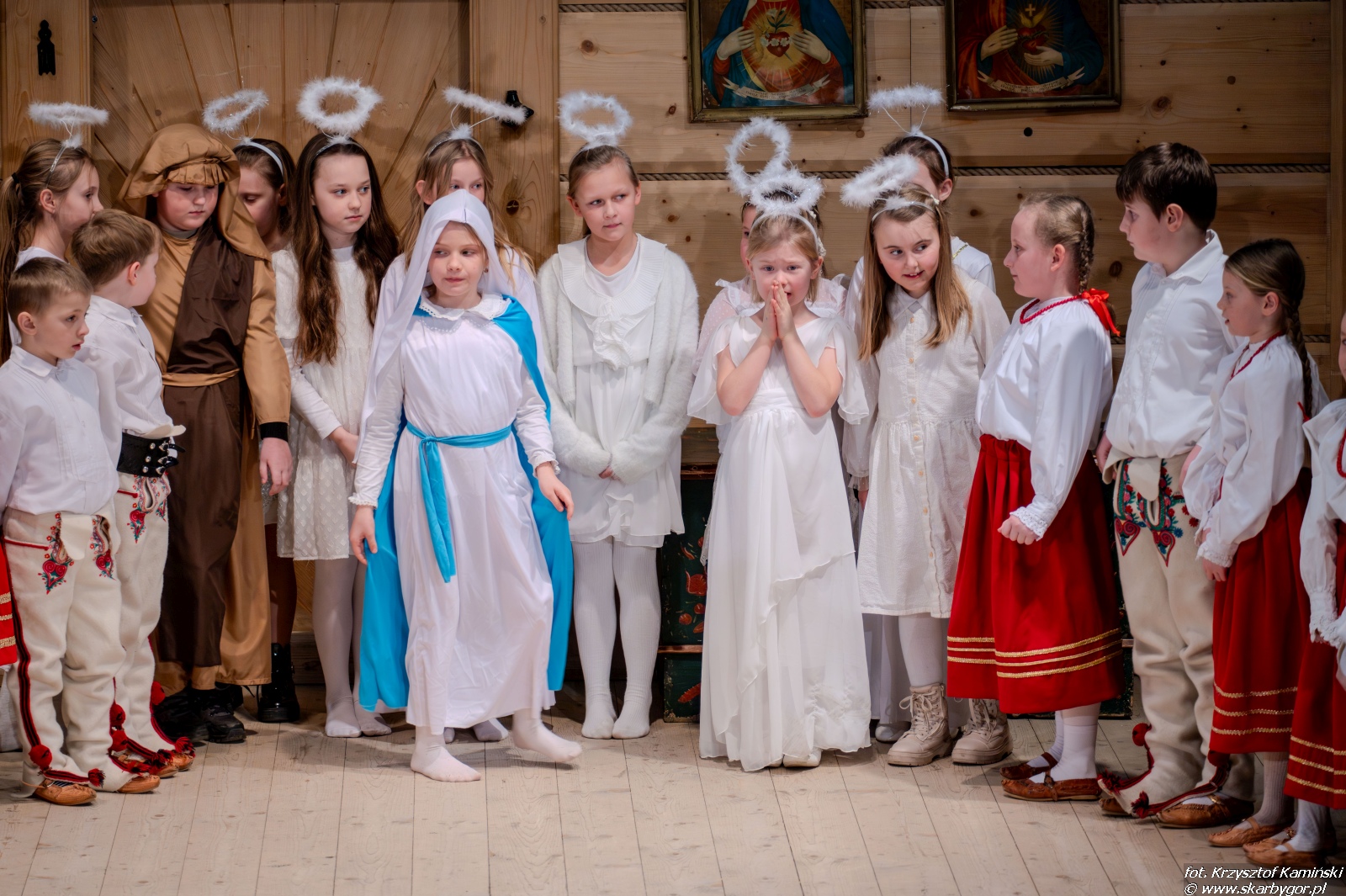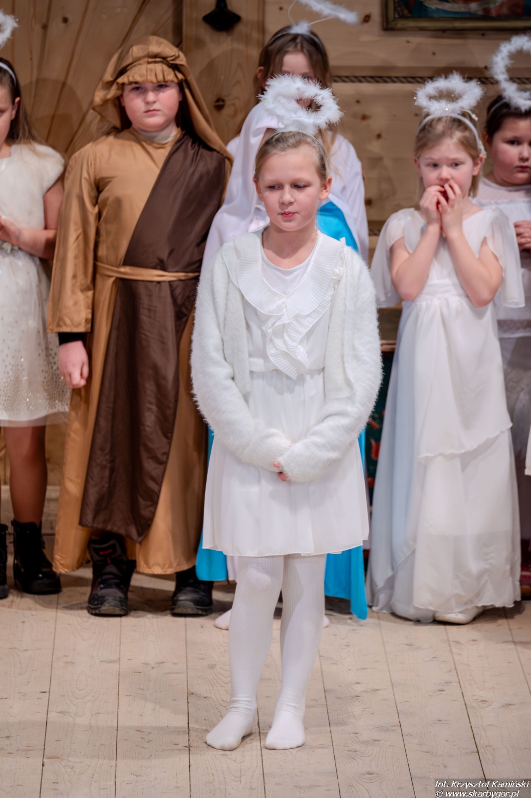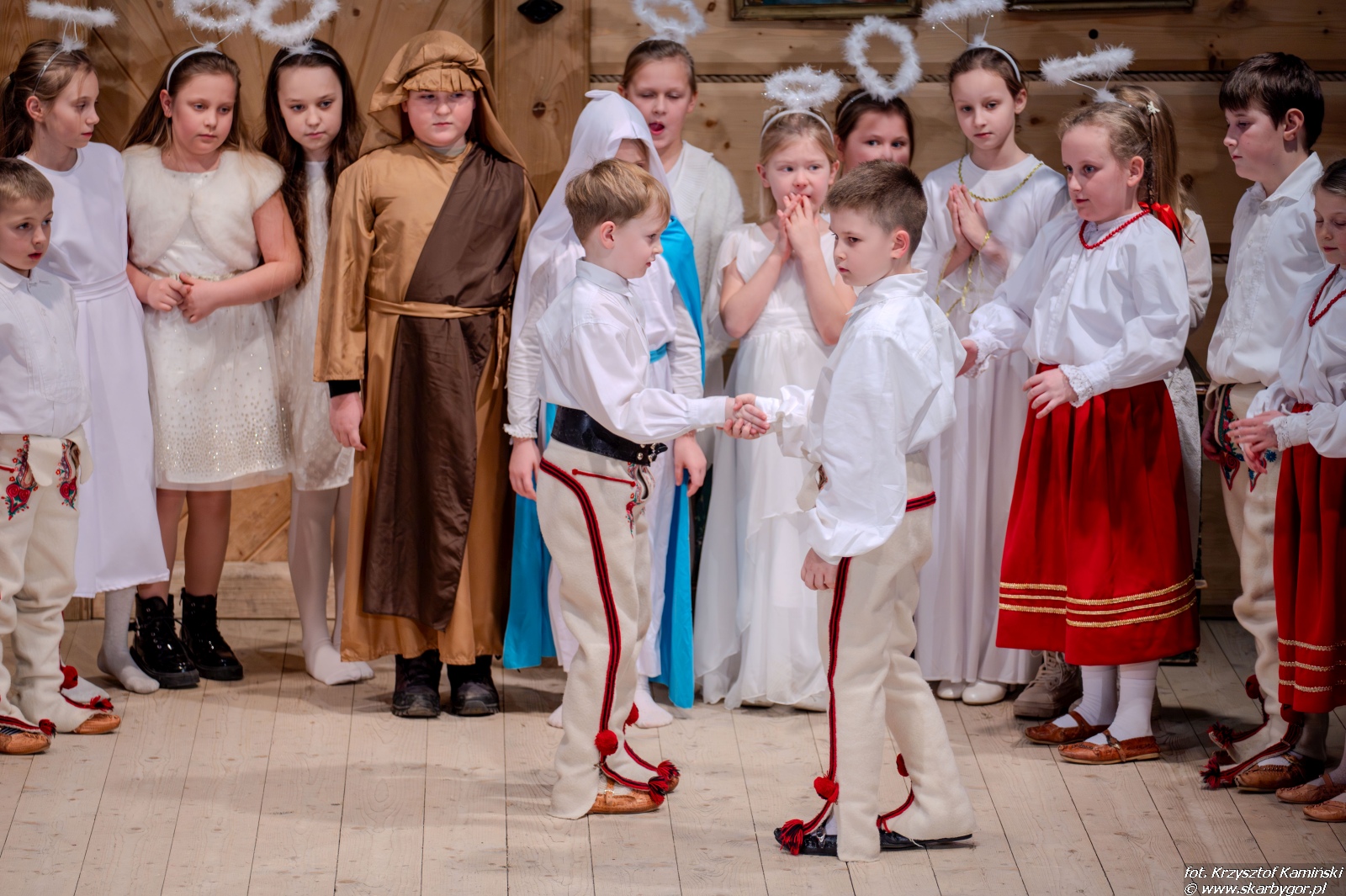 Młodzi artyści zaprezentowali historię pasterzy wędrujących do Betlejem, którzy po drodze wdają się w spór o to, kto z nich jest najlepszy. Ich kłótnia zostaje przerwana przez aniołów, przypominających, że największą wartością są miłość, zgoda i czyste serce, a nie rywalizacja. Pod wpływem tych słów pasterze godzą się, łączą swoje dary i wspólnie, w atmosferze radości i pokoju, wyruszają do betlejemskiego żłóbka, by powitać Nowonarodzone Dziecię – symbol miłości i nadziei.