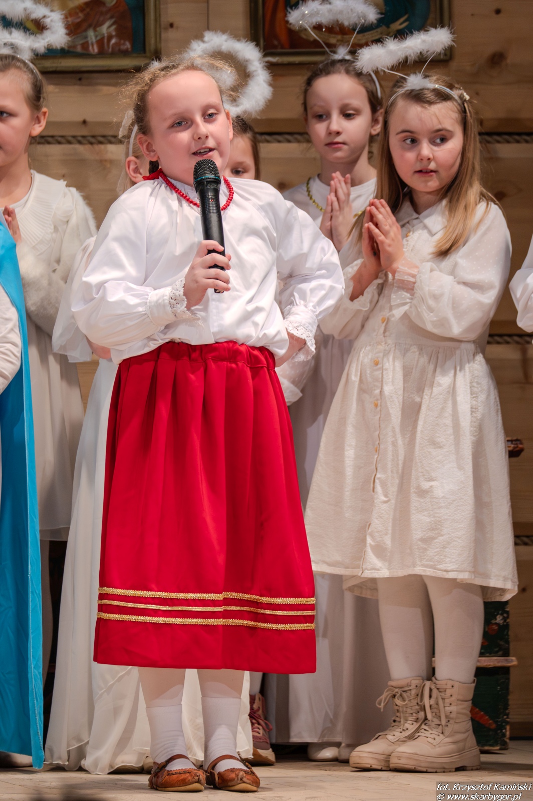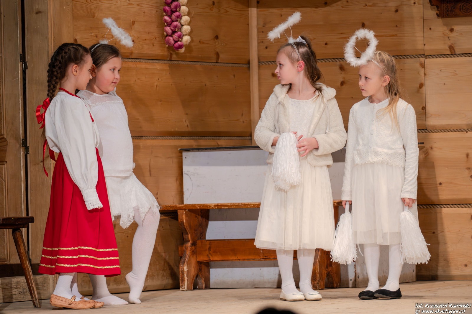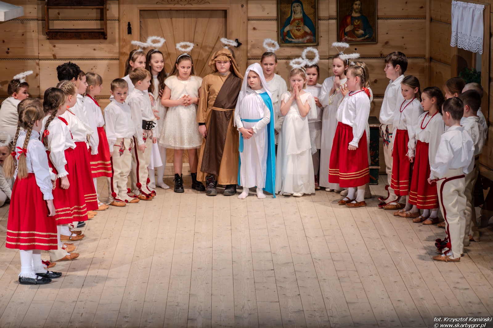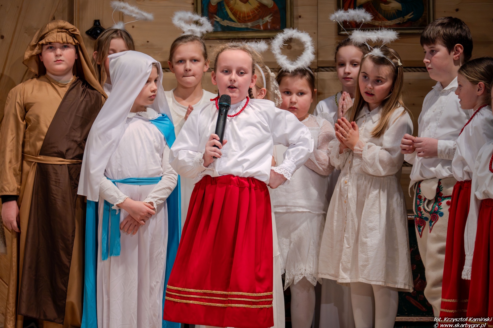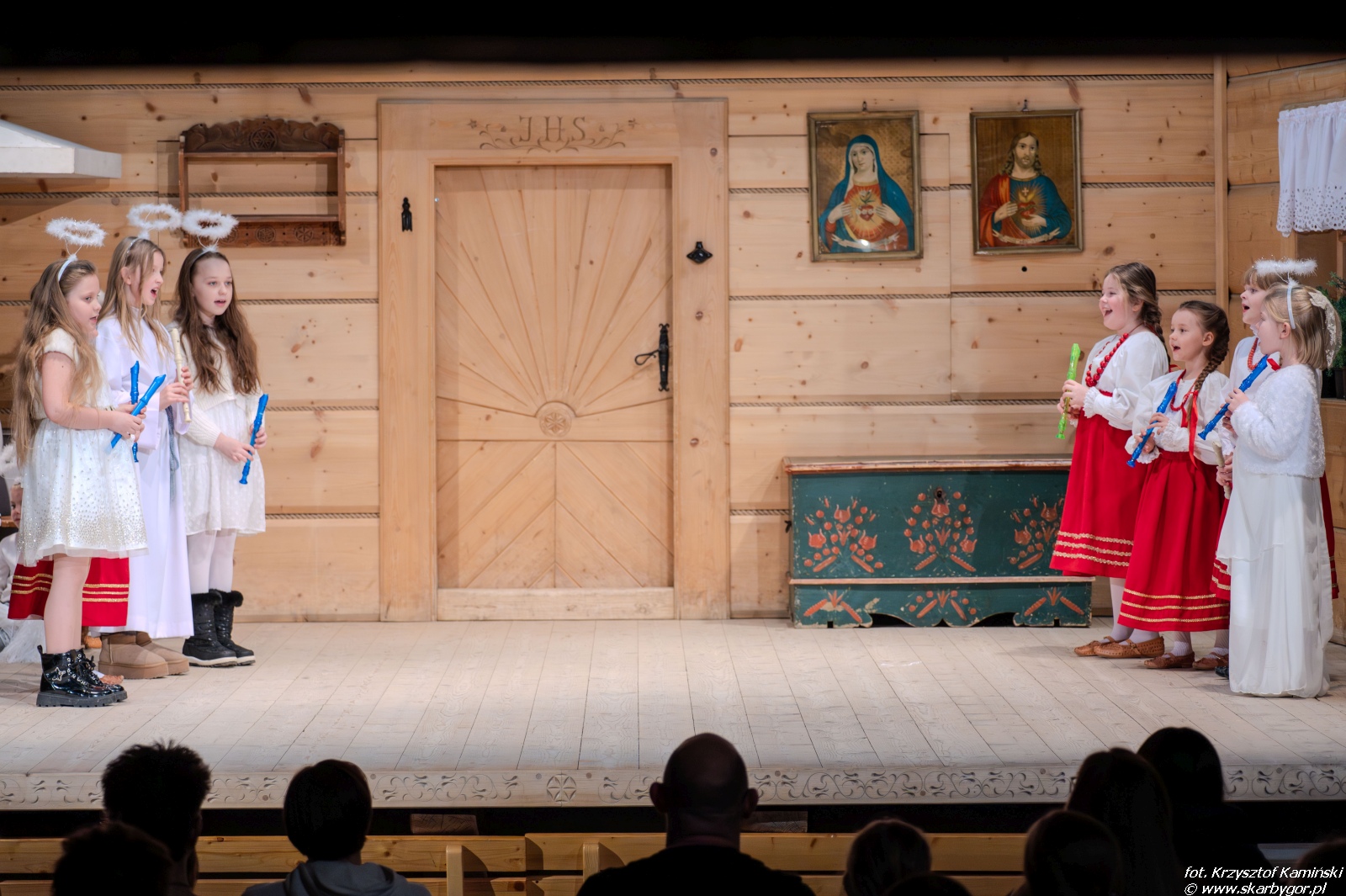 Młodzi artyści zaprezentowali historię pasterzy wędrujących do Betlejem, którzy po drodze wdają się w spór o to, kto z nich jest najlepszy. Ich kłótnia zostaje przerwana przez aniołów, przypominających, że największą wartością są miłość, zgoda i czyste serce, a nie rywalizacja. Pod wpływem tych słów pasterze godzą się, łączą swoje dary i wspólnie, w atmosferze radości i pokoju, wyruszają do betlejemskiego żłóbka, by powitać Nowonarodzone Dziecię – symbol miłości i nadziei.